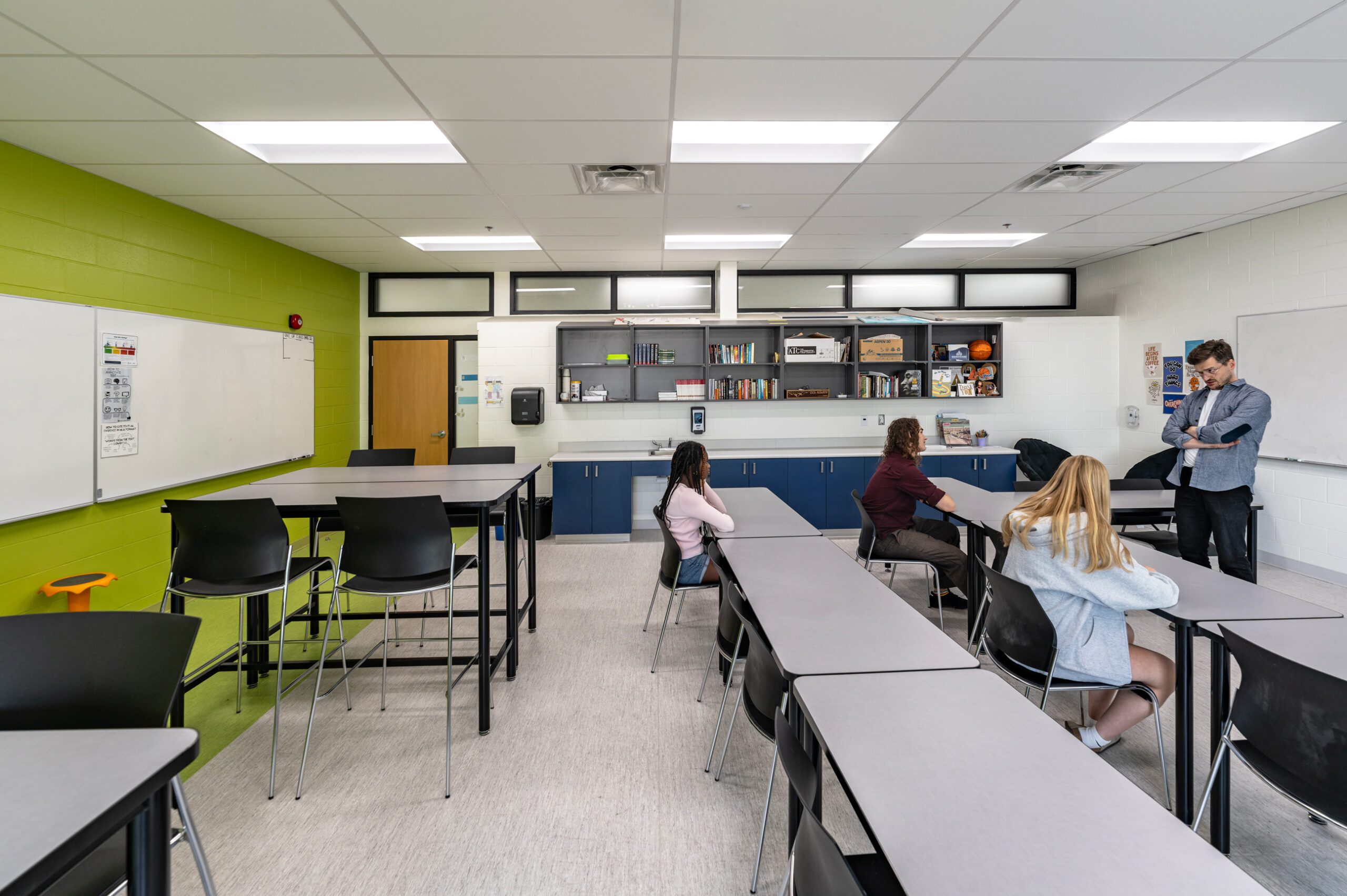 The project included repurposing classrooms for a larger student services space in anticipation of the growing student population, as well as classroom and administration renovations to better suit future needs. Design and construction phases were carefully planned to accommodate school function as well as student and staff safety throughout the construction.