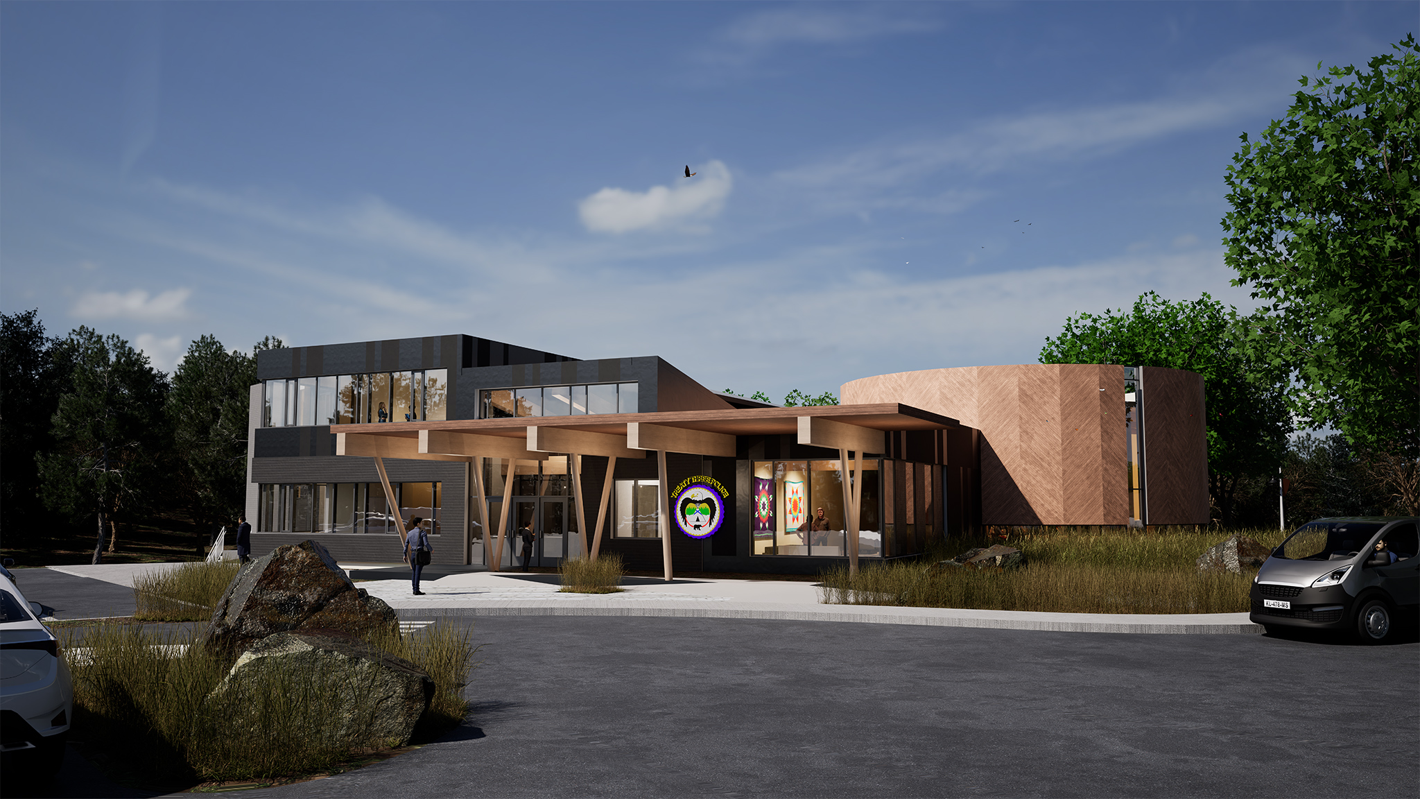 The building is designed to sit comfortably within the beautiful landscape of the area as it is inspired by the trees, granite outcroppings, brilliant water, and spectacular sunsets of the Lake of the Woods region. Wood will be showcased in the structure of the interior community spaces and on the exterior in a herringbone pattern as a cladding on the Community Cultural room, full height vertical windows reinforce the cardinal directions. The wooden canopy welcomes visitors and provides shelter. The Cultural coordinator room embraces the most prominent entrance corner to invite community and elders into the space for tea and conversation. Skylights celebrate connection to the sky. The natural retro plate flooring celebrates the earth. The many windows with natural ventilation, gym and locker rooms will provide wellness and stress relief to the members of the police service.